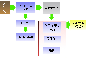 消除城市糞便無序排放、防止污染水體及周邊環境、防止傳播病源和危害人(畜)類健康,所以應對城市糞便進行無害化處理。本著經濟實用和充分利用已有市政設施資源、投資小、效果佳的原則設計。采用世界技術領先的設備進行機械處理后納入市政排水管網與城市污水一起進行最終處理是最佳的選擇。