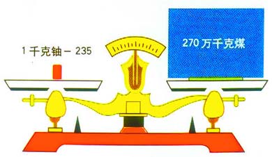 1千克鈾-235相當于270萬千克標準煤的能量示意圖