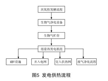 發電供熱流程的關鍵設備是比較昂貴的組套熱發電機組,其使用壽命與生物氣的凈化程度有關。生物氣中毒性和腐蝕性最大的氣體是硫化氫。發電供熱流程見圖5。