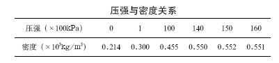 一般而言,褐煤的堆積密度為0.56×103~0.6×103kg/m3,煙煤的堆積密度為0.8×103~0.9×103kg/m3,相比之下,秸稈的堆積密度要小的多,為0.05×103~0.12×103kg/m3。通過在生物質粉體上施壓可增加其密度,所施壓強及粉體密度的關系如下表所示。