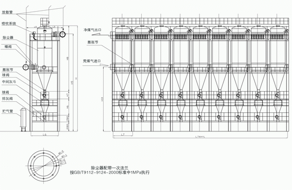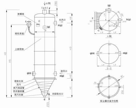 除塵器結構緊湊,強度高,剛性強,密封性好,清灰效果好,操作維修方便,運行安全可靠。