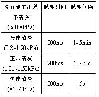 2.應用。采用慢速、正常、快速三種脈沖清灰模式進行清灰,以適應濾袋上灰塵負荷的變化,保證在濾袋整個壽命中維持最低的除塵器阻力。為了能實現自動控制三種脈沖清灰模式,除塵器各室和總的壓差需要進行自動測量并傳遞給PLC,由PLC啟動自動選擇程序。PLC會根據壓差大小啟慢速、正常或快速的脈沖清灰模式,并給脈沖閥發出清灰指令。