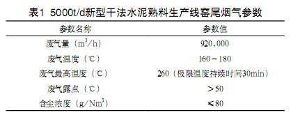 1 5000t/d新型干法水泥熟料生產線窯尾煙氣參數(見表1)