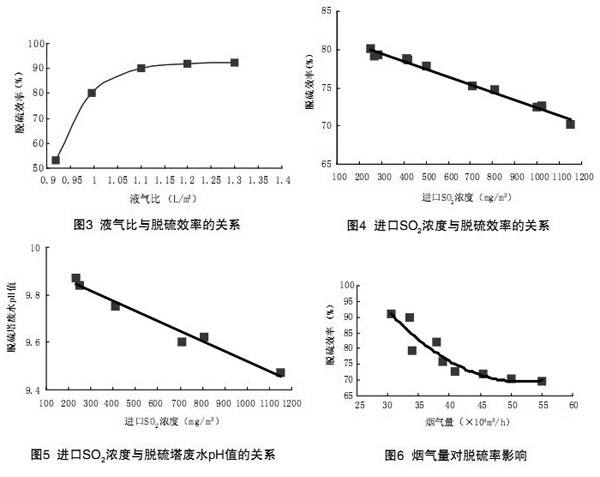 從運行過程來看,影響脫硫的因素較多,主要有:氣液比、進口SO2濃度、煙氣量、燒結機負荷等。