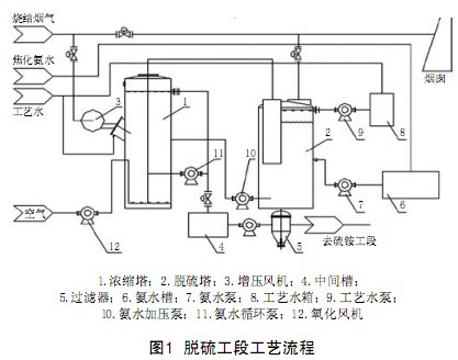 氨法是一種常用的煙氣凈化技術。自20世紀60年代開始應用。氨法脫硫技術具有反應速度快、脫硫效率高、脫硫后的產物易于處理等優點,同時由于它比傳統的濕法脫硫技術容易操作、可靠性高和運行費用低而得到廣泛應用, 氨-硫銨法煙氣脫硫裝置主要工段由脫硫工段和硫銨工段兩部分組成。