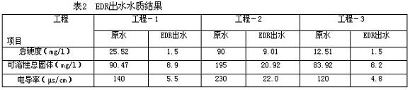 從EDR過程中離子遷移性能可知Ca2+、Mg2+具有較高的選擇性,硬度的脫除率大于總脫除率,達到軟化的目的。表2列出上述EDR工程的原水及出水水質結果對照。