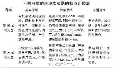 (1)聲波吹灰器利用聲能吹灰有一定的選擇性,一般情況下比較適合干松灰;