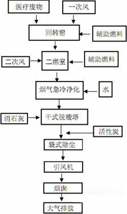 2.回轉窯式醫療廢棄物焚燒處置系統工藝流程