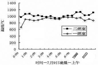 2005年7月初,我公司邀請清華大學有關院系人員到項目現場對整個醫療廢物焚燒系統的排放指標進行了測試。下面是某個時間段的溫度曲線圖,具體測試數據表見附表1。