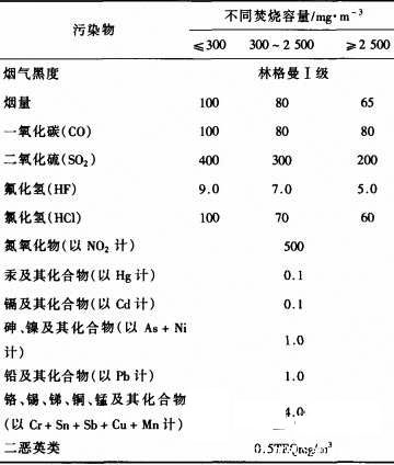 表2危險廢棄物焚燒爐大氣污染物排放限值![]() |