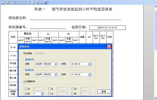 在報表畫面中,按照《國家煙氣排放標準規范》設計報表格式,配合其強大的查詢,檢索,打印等功能。