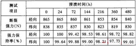 PPS針刺濾料耐酸堿腐蝕性試驗結果見表2、表3。