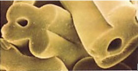 纖維配方技術主要是指耐高溫化學纖維品種選擇和配比多少。我們采用的是P84纖維,詳見圖6,這種纖維具有異型截面,比表面積大,過濾性能好,同時耐溫達260度,與玻纖耐溫匹配性好。