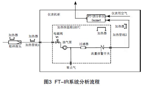 FT-IR系統由氣體取樣及預處理、傅立葉變換紅外分析儀和數據采集處理系統三個部分組成。FT-IR系統分析流程見圖3。