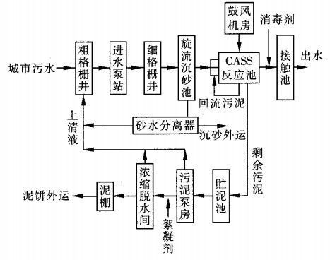 桂林某污水處理廠主要處理桂林西城區的生活污水,采取CASS工藝,流程圖如下1所示:
