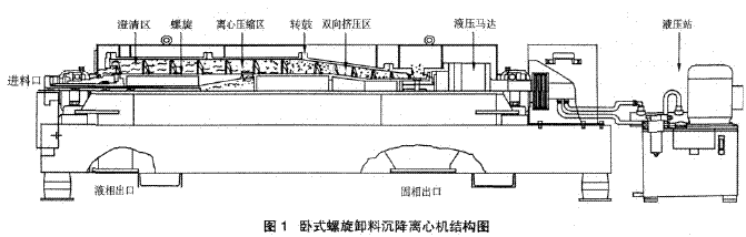 由此可見,液壓差速臥螺離心機作為一種新型臥螺離心機,因該機采用增長了轉鼓有效長度,大大增加沉降的距離,增長了物料在機內停留時間;采用可根據負載變化差速自動反饋調節,推料功率自動補償,可實行小差速的液壓差速系統,是國際上公認的最先進的差速形式,從而使生產能力、分離脫水效果都有很大的提高,并且具有電耗小、藥耗小等優點。在此基礎上經過特殊設計和改進的,尤其針對鋼鐵行業污泥的離心式脫水機是污泥脫水設備中的佼佼者。