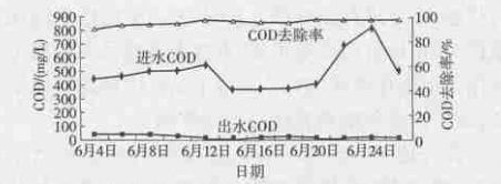 ![]() 圖1 膜生物反應器對COD的去除效果 |