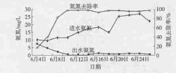 ![]() 圖2 膜生物反應器對NH3-N的去除效果 |