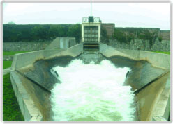 本工程原水水質獨特,處理工藝要同時滿足低溫低濁水和高濁度水(短時)的特點,難度較大。水處理流程采用跌水混合、隔板絮凝、斜管沉淀、氣水反沖洗V型濾池;全程重力自流,為節省占地,采用濾池與清水池疊層結構;水廠布置緊湊,建筑風格協調美觀。