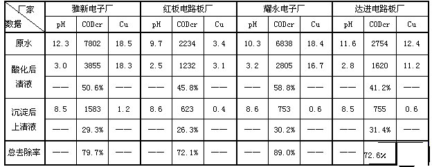 上述的四種油墨廢水處理方法,各有優劣,考慮到工程實際的可行性,采用酸化-凝聚法處理PCB油墨廢水是較為合適的方法, 在實驗室小試條件要求也不太高,實驗方便,反應時間要求不長,可馬上化驗分析實驗結果。我們取幾個不同廠家的油墨廢水作實驗如下: