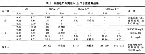 火電廠廢水回用工藝流程已成功地應用于新鄉火電廠、沙角A發電廠、焦作丹河電廠、湛江發電廠等多種類型的工業廢水綜合處理工程,并正在鄭州發祥登封電廠的廢水零排放(工業總排廢水與澄清灰水的混合水)工程中實施。以新鄉火電廠為例,處理效果見下表。