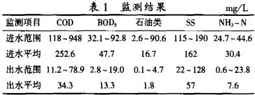 2004年2月-l0月對污水處理廠一體化氧化溝新工藝處理的監測結果見表1。