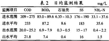 004年10月中旬,在油田污水處理廠擴建工程驗收期間,油田環境監測站連續3d進行日均值的采樣監測,監測結果見表2。從監測結果看,出水排放符合GBl8918-2002規定的二級標準要求,甚至達到一級B標準。