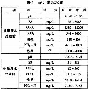 廣州某合資企業,有一條紙箱生產線,其紙箱的生產量每年為400。另外還設有飯堂和工業鍋爐房及油罐區。該項目產生的廢水有印刷廢水、飯堂污水、油罐區油污廢水及員工的生活污水。其中印刷廢水來源于紙板的印刷過程以及印刷機械設備的清潔,該類廢水含大量的水溶性油墨,外排量為20t/d,含有SS、COD、BOD5、色度、油類等污染物,其中油類濃度可達到167mg/l,COD更可高達18200mg/l,成份復雜,濃度高。另外,員工飯堂日排餐飲廢水約50t/d,含有大量油脂、食物殘渣和懸浮物;生活污水來源于員工的生活過程,包括員工的淋浴、洗衣等,飯堂和生活污水總排量約100t/d,生活污水水質水量波動范圍大,其中含有較多的有機物,表面活性劑含量高。另外,該公司油罐區油污水來源于管道的跑冒滴漏油以及油罐清洗外排的殘液、混合雨水而成,還有少量洗漿機水,主要含有少量燒堿及木薯粉等雜質,廢水水質詳見表1。