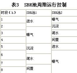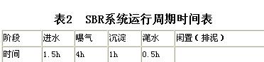 兩格SBR反應池運行周期如下表反示: