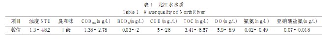 原水取自北江水,原水水質如表1所示。由表1可知,本次實驗所取的水源水質較好,接近于地表水環境質量標準Ⅱ類。但在2004年3月和4月,該水源出現了氨氮濃度突升的情況,分別達到了0.94mg/L 和 1.32mg/L, 導致水廠出水氨氮分別為0.6mg/L和0.98mg/L,超出了飲用水標準。因此采取有效措施應對水中氨氮濃度突升是非常必要的。