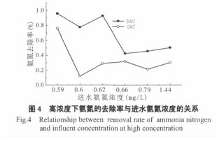 圖 2 活性炭 GAC 去除氨氮與進水濃度的關系