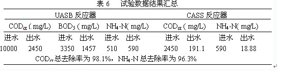 (1)采用UASB厭氧反應器-CASS反應器工藝經試驗得到以下運行參數: