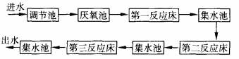 滲濾液處理工程的核心為3個礦化垃圾反應床,在一級礦化垃圾反應床前設有調節池和厭氧池,對應的每一級反應床之后建有一座集水池。其工藝流程如圖1所示。