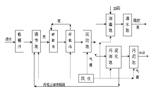 污水中的氨氮及有機氮化合物被氧化成硝酸鹽(硝化反應),與缺氧池中的反硝化形成硝化--反硝化系統,避免了污泥在沉淀池產生大量浮渣。