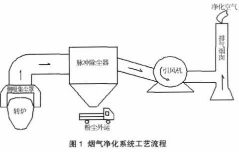 轉爐冶煉產生的大量煙氣通過如圖1所示工藝流程,將煙氣凈化后,達標排放。