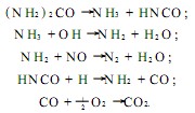 尿素(N H2 ) 2 CO 噴入爐內后, 與 NO 的反應機理如下: