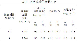 從本次試驗可以看出: 脫硝率大于 30 % , 氨逃逸率小于 7.6 mg/ m3。