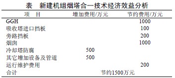 由于本工程為老廠改造工程,經濟效益不是十分明顯。若煙塔合一技術在新建電廠應用,則經濟效益相當顯著,以 300 MW配套脫硫工程為例,效益分析見表。