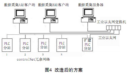 改造后,所有的分站數據,包括擴建工程的分站數據都通過工業以太網傳輸到數據采集服務端。數據服務端采集分站數據進行存儲和處理。這里需要特別說明的是,由于所選用的網絡具有透明性,數據服務器可以直接訪問ControlNet網絡上的各個分站,擴建后任意工業以太網結點上的分站和ControlNet網絡上的各個結點也可以互相通訊。數據采集客戶端從服務器端數據庫訪問數據,并可實現對所有分站的監控。