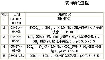 根據各階段調試的出水水質監測,2000年8月出水水質分析結果顯示,CODCr=150mg/L、BOD5=40mg/L、SS=70mg/L、NH3-N=1mg/L,都大大低于設計標準。