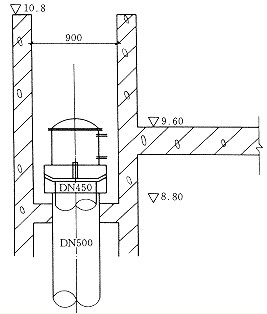 b.濾池排水 拆除原排水虹吸管,在分配渠合適的位置開設排水口,以DN500池底 閥控制,見圖3。
