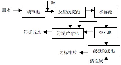 根據以上特點,決定采用水解(酸化)—SBR—混凝沉淀工藝,如圖1 所示。
