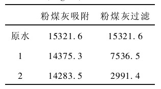 表1 粉煤灰吸附和粉煤灰過濾的COD(mg/L) 去除效果比較 |
