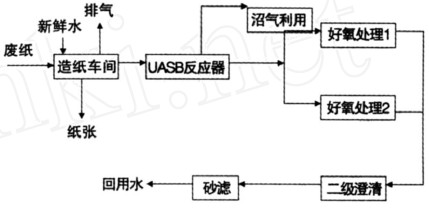 德國Zülpich 紙廠,以廢紙為原料生產掛面箱紙板,年產4l 萬t 。在1975~1995 年間,已實現廢水零排放 ,但沒有安裝凈化處理設備,因為腐蝕和氣味問題,在20 世紀90 年代初期工廠決定投資建一個廠內白水處理車間,以減少溶解有機物和 CODCr負荷。由于系統全封閉,循環白水中雜質積累濃度很高,CODCr 甚至高于30000 mg/ L ,因此在第1 段生物處理段采用UASB 反應器作厭氧水處理,然后在第2 段用2 個好氧裝置處理。
