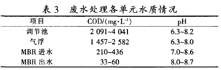 (3)由于化工廢水中酸堿廢水COD較高,為了保證MBR膜出水連續穩定達標,一定要加強預處理和生化部分運行管理,以保證B好氧部分進水 COD<400 mg/L。