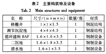主要構筑物及設備見表2。