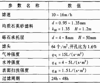 2.1 采用均質濾料 與普通級配濾料相比,均質濾料顆粒比 較均勻(不均勻系數小于1.6),有效粒徑較大 (dm=0.95±0.05mm),能有效消除沖洗時的 水力篩分現象,使濾層孔隙率增大,從而提高 濾層的整體含污能力,延長過濾周期,降低洗 砂水耗,增加產水量。
