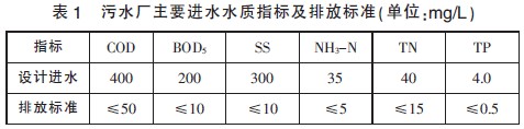 通過對某經濟開發區污水水量及水質進行調研,確定污水處理廠的設計規模為3.0 萬m3/d。根據該污水廠環境影響初步分析,要求污水處理廠出水水質應達到《城鎮污水處理廠污染物排放標準》(GB18918-2002)一級標準中的A 類標準[1]。具體水質指標見表1。同時要求處理后出水中糞大腸桿菌數≤103 個/L。