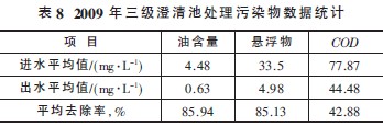 2009 年實際平均處理污水量為703m3/h, 最大處理水量為780m3/h。