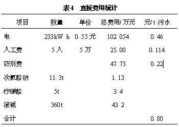 膜的壽命年限以5 年計,每片面積為1215 m2 MBR 膜的成本在2 000 元;則每產一噸水,膜更換費用為:0.36 元